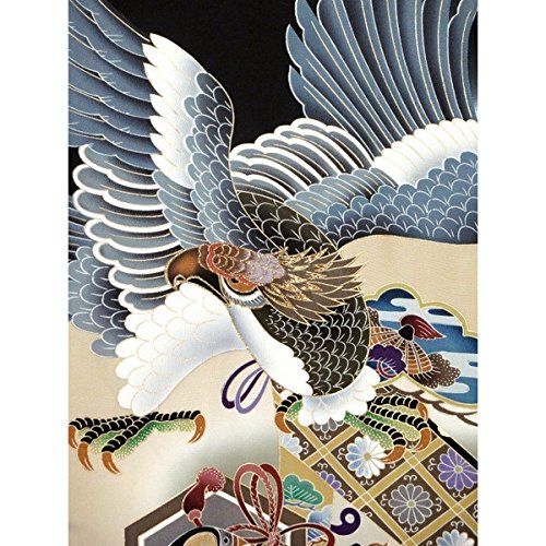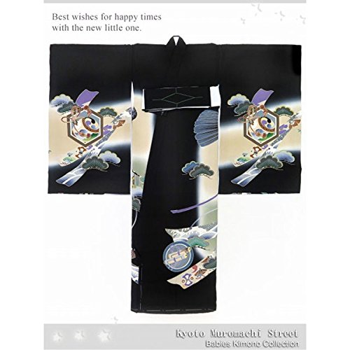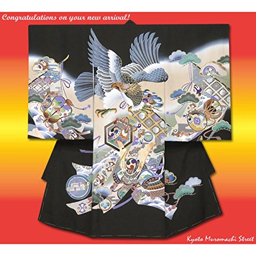 お宮参り 男の子 着物 正絹のお祝い着(初着・産着)「黒、鷹と兜」YBU323