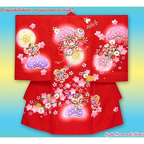 お宮参り 女の子 着物 正絹のお祝い着(初着・産着)「赤、鞠」HGU326