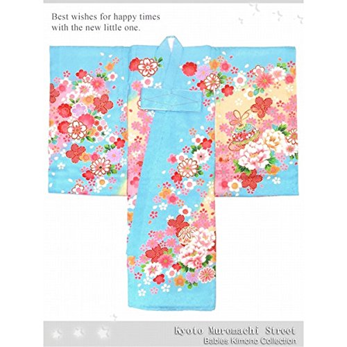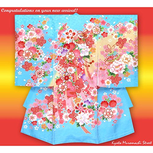 お宮参りの着物 女の子の産着(初着) 正絹「水色 鈴に束ね熨斗」YGU764