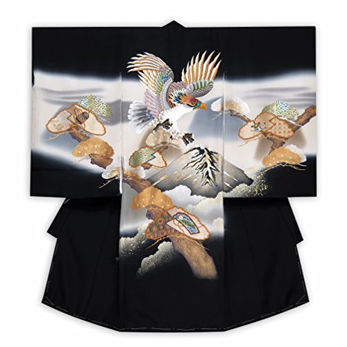 お宮参り 男の子の産着(初着) 正絹 日本製「黒地 鷹と富士」HBU778