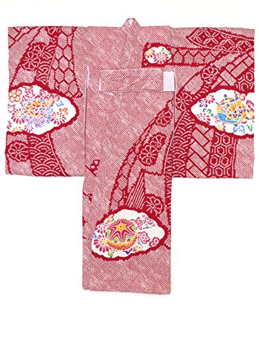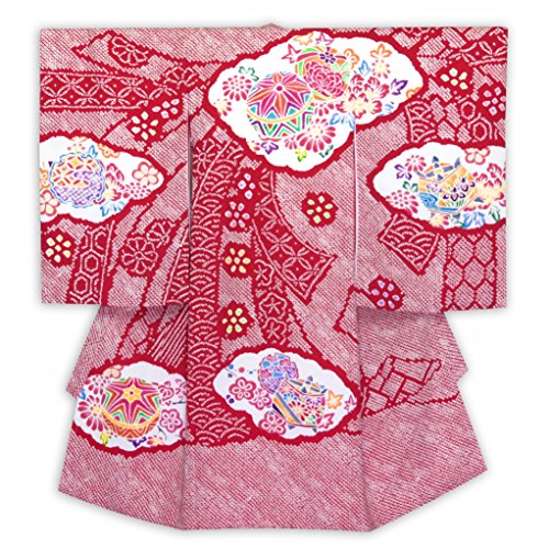 お宮参り 女の子の産着(初着) 正絹 日本製「赤 雲に鞠 束ね熨斗」HGU770