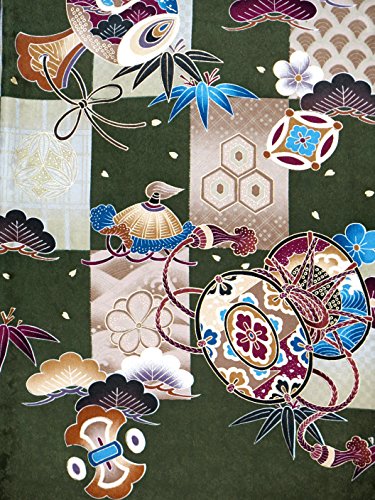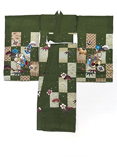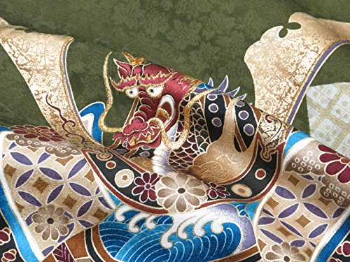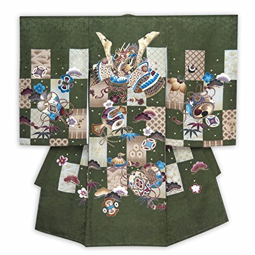 お宮参り 男の子の産着(初着) 正絹 「濃い抹茶 市松に兜」HBU779