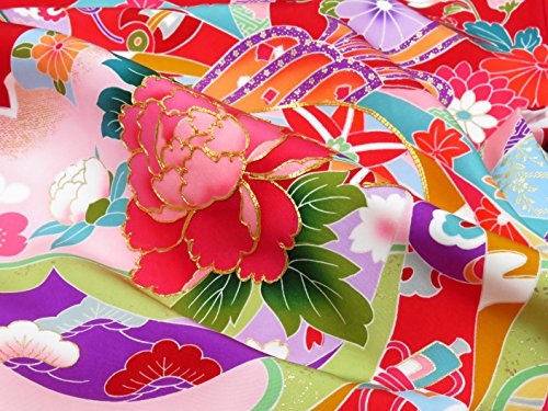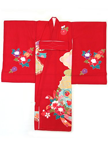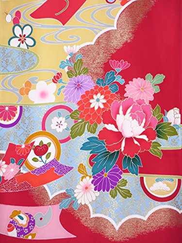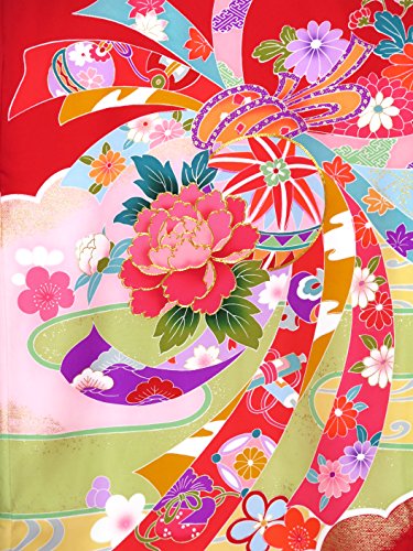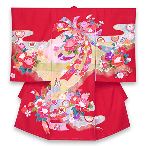 お宮参りの着物 新生児に 女の子の産着(初着) 正絹 「赤 牡丹と鞠に熨斗」HGU783