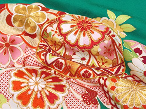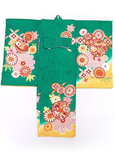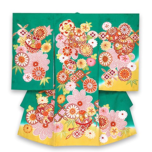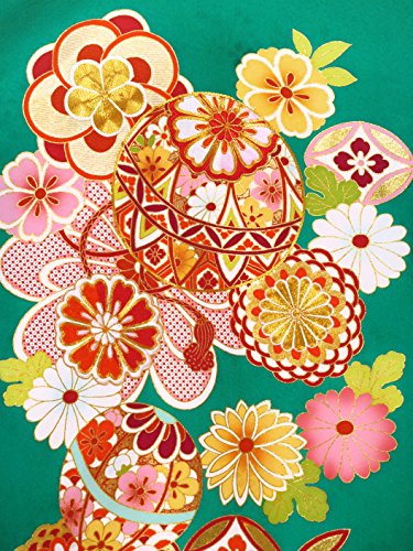 お宮参りの着物 新生児に 女の子の産着(初着) 正絹 「緑系 鞠と菊に七宝」HGU784