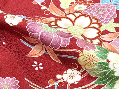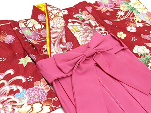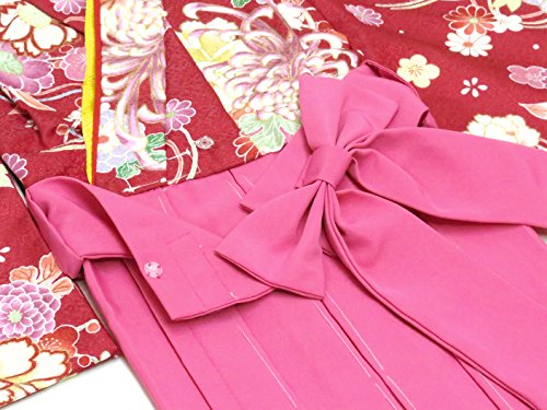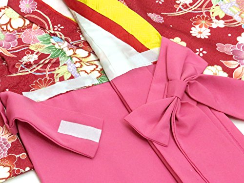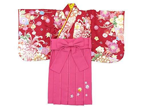 赤ちゃんの着物 初節句 お食い初めに 0歳-1歳女児用 袴ワンピース「着物:赤、菊に水引き 袴:ピンク」FAS056