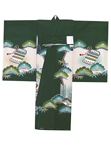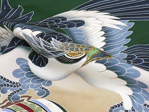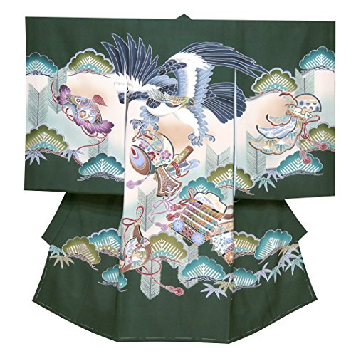 お宮参り着物 正絹 男の子のお祝い着(初着・産着) 日本製「深緑 鷹と小槌」HBU798