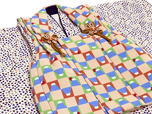 初節句に 男の子 赤ちゃん用 ベビー被布と着物セット「ベージュ系、富士山」HFB069