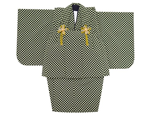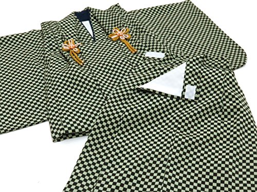 初節句に 男の子 赤ちゃん用 ベビー被布と着物セット「緑系、市松」HFB071