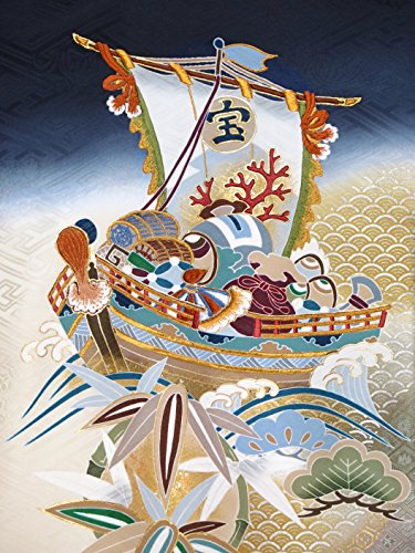 - 背中に宝船と笹が描かれた、男の子のお宮参りの着物です。
