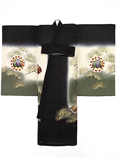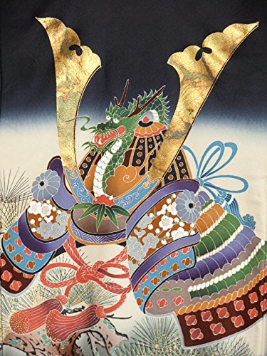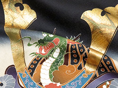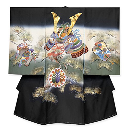 産着 男の子 お宮参りの着物 熨斗目 (正絹)「黒 龍に兜と松」HBU821