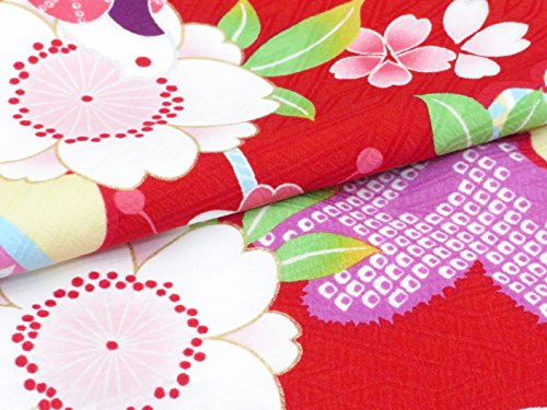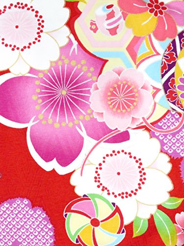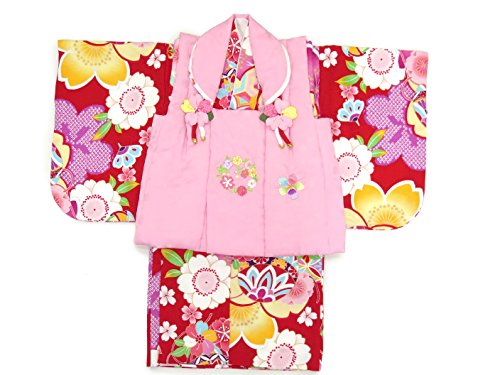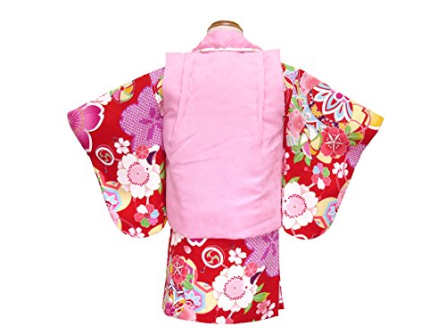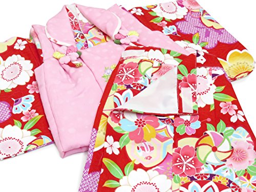 初節句 女の子 着物 赤ちゃん用 ベビー被布と着物セット「赤×ピンク 鞠と桜」HFG085