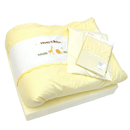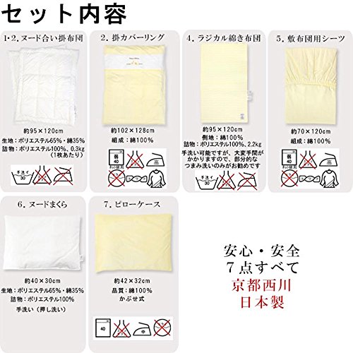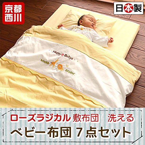 【高品質なラジカル敷き布団入り!】京都西川 ベビー布団セット 7点セット 洗える ローズラジカル敷き布団 掛け布団2枚(合い掛け布団) 枕 綿100% 掛け布団カバー 敷き布団シーツ 日本製 ハッピーベビー イエロー