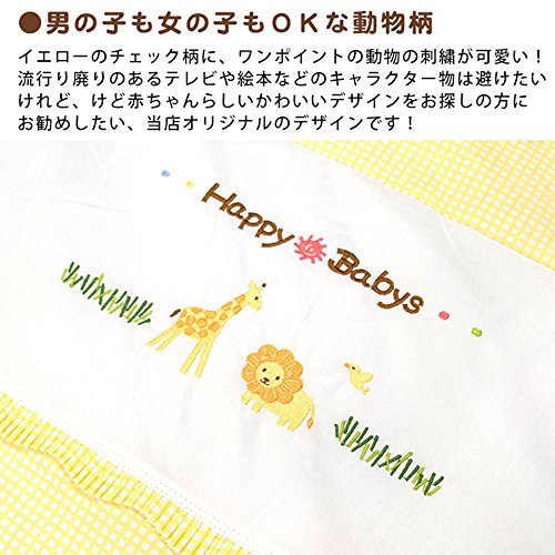動物の刺繍のワンポイント入り イエローのチェック柄&クリームカラーで男女問わず使えます。
