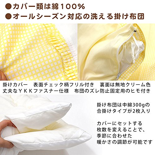 掛け布団はちょっと薄めの合い掛け布団が2枚セットになっているので室温に応じて使い分けOK♪