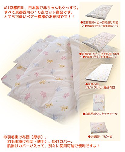 京都西川 ベビーサイズ 羽毛組ふとん10点セット(ローズラジカル敷布団使用)(日本製)(ベアー)