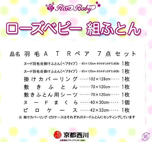 京都西川 カバーリングタイプ ダウン90% ローズベビー羽毛組ふとん7点セット (アニマルトレイン)