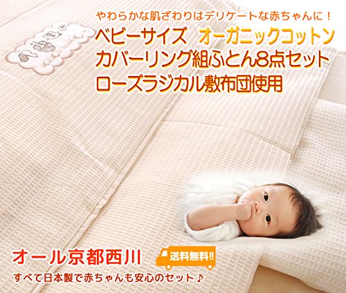 京都西川 ベビーサイズ オーガニックコットンカバーリング 組ふとん8点セット(ローズラジカル敷布団使用)(日本製)