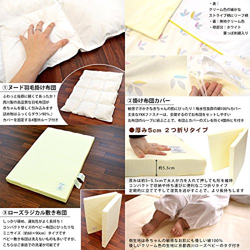 掛け布団の王者・羽毛布団と、赤ちゃんのための安心設計・ローズラジカル敷布団の組み合わせは、まさしく最強のコラボレーション!