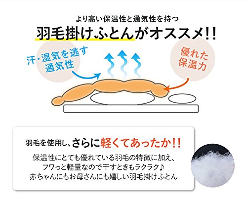 - 【 羽毛掛けふとん 】 サイズ:75×95cm 側生地:ポリエステル80% 綿20% 詰め物:ダウン90% フェザー10% 約0.18kg