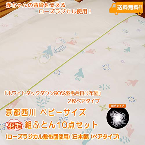 京都西川ベビーサイズ 羽毛組ふとん10点セット(ローズラジカル敷布団使用)(日本製)【ペアタイプ】
