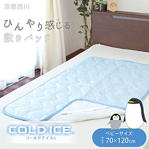 京都西川 ベビー 冷感 敷きパッド 洗える 70×120cm マリン柄 ピンク ひんやり 接触冷感生地コールドアイス®使用 四隅ゴム付き ベッドパッド パッドシーツ かわいい 赤ちゃん 夏