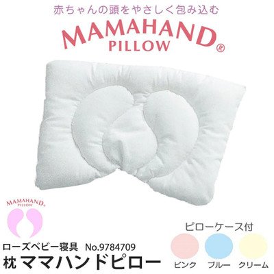 赤ちゃんの頭をやさしく包み込むママハンドキルティングが施されたまくらです。ピローケースは3色から選べます。