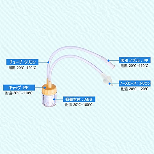 - ●逆流防止パーツつきで、吸った鼻水が逆流せずボトルにたまるので、直接口に入ることがありません。