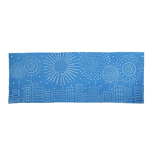 ビル群と花火を、刺繍風のデザインでてぬぐいにしました。