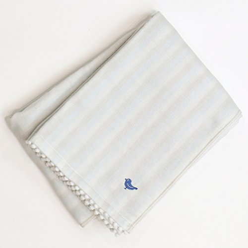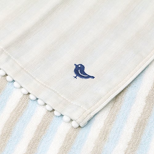 - パイル面は淡いカラーの3色ストライプ、ガーゼ面にはワンポイントの刺繍をあしらい、シンプルさと、かわいらしさを併せ持ったデザインとなっています。パイルには無撚糸を使用し、程よい吸水性と、やわらかい肌触りを持ったバスタオルは、お子さまにも優しい商品です。