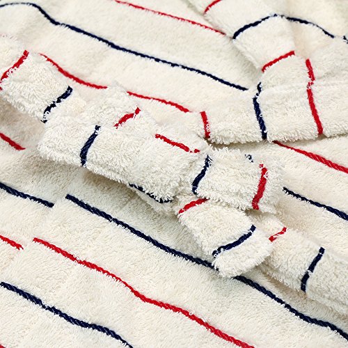 - オーガニックコットンのタオル地をベースに、レッドとネイビーのストライプが入った、トリコロールカラーの赤ちゃん用バスローブです。かわいいフードに、紐も付いて便利!