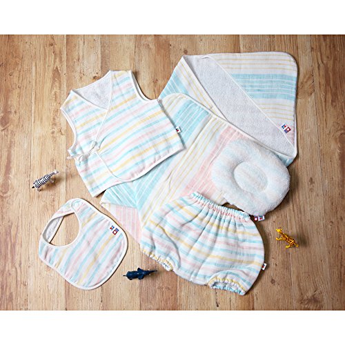 やさしい色味の3色ボーダーを配したガーゼ&パイルのベビーシリーズ。ガーゼのボーダー部分には、やわらかな風合いを生む「トップ染め」のリネン糸を使用。吸収性が高く、乾きの早いリネンのさらりとした肌触りと、コットンのふんわりとしたやわらかさを合わせもっています。 おくるみ・スリーパー・スタイ・ミトン・ピロー・ベスト・パンツなど、展開も多彩。男女兼用なので、お子様の性別がまだわからない方への出産祝いにもおすすめです。