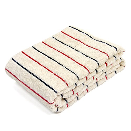- オーガニックコットンのタオル地をベースに、レッドとネイビーのストライプが入った、トリコロールカラーが特徴です。