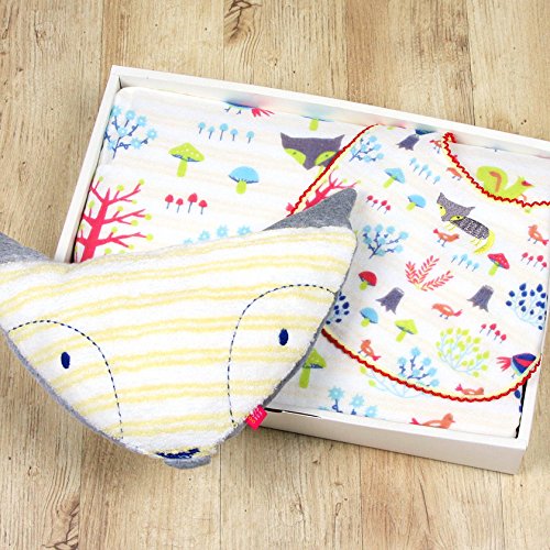 花やきのこ、森の動物たちをモチーフにした、 おとぎ話のような世界を表現した『もり』シリーズのギフトセット。思わず心がほっこりする、優しい色使いと手書き風とイラストで人気です。 スタイ、アームピロー、バスタオルの3点を同梱したベビーギフトセットです。