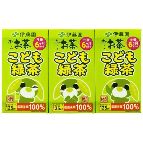 ●商品説明:かわいいパッケージのお子様向け飲みきりサイズ緑茶(清涼飲料水)です。 国産原料100%使用、カフェイン少なめで苦味を抑え、すっきり仕上げました。