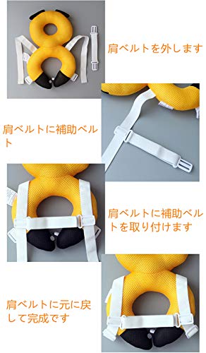 - 【肩紐自由調整】ショルダーストラップの長さは赤ちゃんの大きさに応じて調整できます。また、クッションがしっかり厚みがあり、後ろに転倒した際はちゃんと頭を守ってくれるので安心です。★ご注意:当商品は後方に転倒した際の、後頭部への衝撃を軽減するものであり、あらゆる事故から身を守るものではございません。