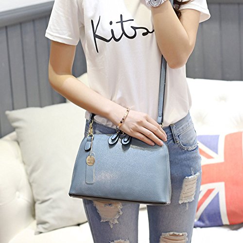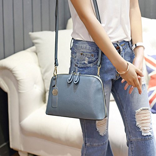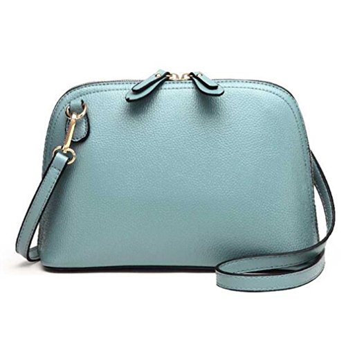 レディース ショルダーバッグ 2way 斜めがけ 肩掛け レザー 貝殻型 ポシェット 撥水加工 多機能 便利 大容量 おしゃれ ブルー