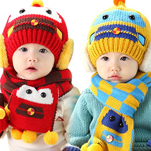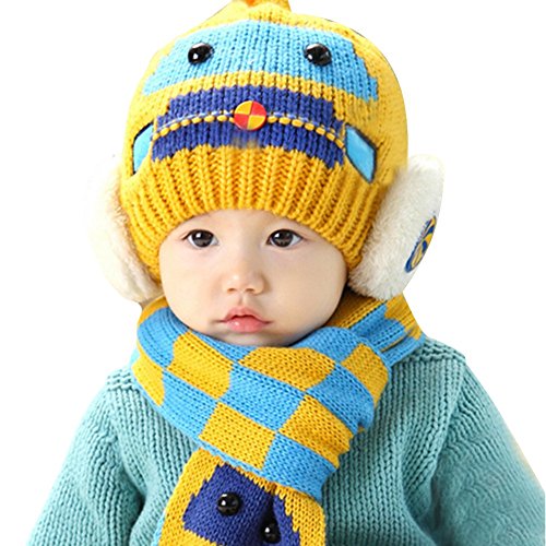 冬 赤ちゃん帽子 子供の帽子マフラーセット クリスマス帽 子供帽。ベビー帽子。赤ちゃんの帽子。冬の新型。小型乗用車。护耳帽+マフラースーツ 毛糸の帽子 外出する保温 子供 用 かわいい 防寒 ニットキャップ ニット帽 女の子 男の子 (イエロー) [並行輸入品]