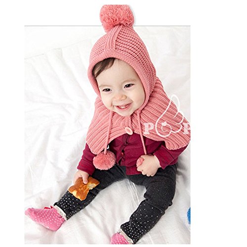 冬 赤ちゃん帽子 子供の帽子マフラーセット クリスマス帽 タマ护耳帽 毛糸の帽子 外出する保温 子供 用 かわいい 防寒 ニットキャップ ニット帽 女の子 男の子 (ピンク) [並行輸入品]