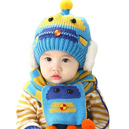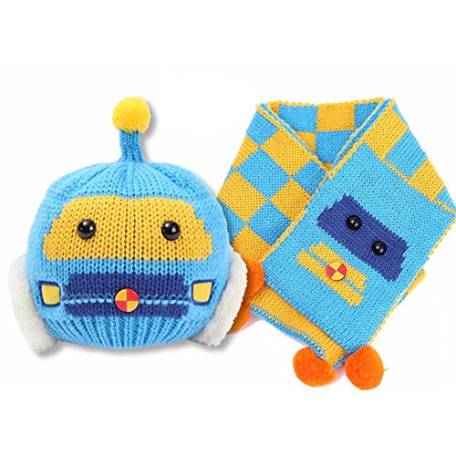 冬 赤ちゃん帽子 子供の帽子マフラーセット クリスマス帽 子供帽。ベビー帽子。赤ちゃんの帽子。冬の新型。小型乗用車。护耳帽+マフラースーツ 毛糸の帽子 外出する保温 子供 用 かわいい 防寒 ニットキャップ ニット帽 女の子 男の子 (ライトブルー)