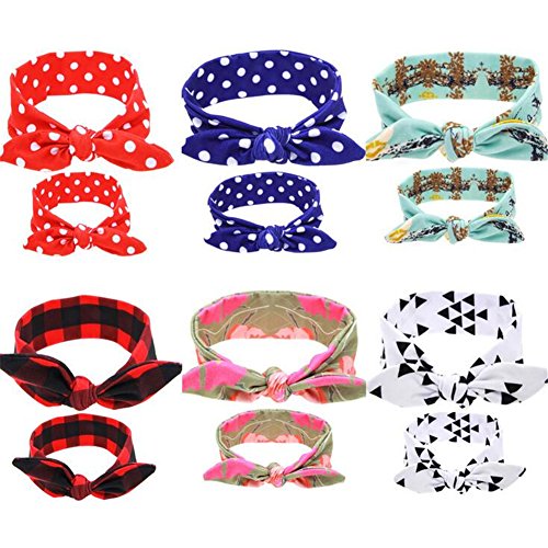優品屋 ヘアバンド ヘアアクセサリ リボン 可愛い キッズ 女の子 出産祝い ギフト ベビー用 子供用 大人 母と娘セット 大人子供セット ブルーホワイト
