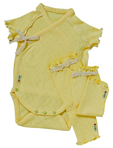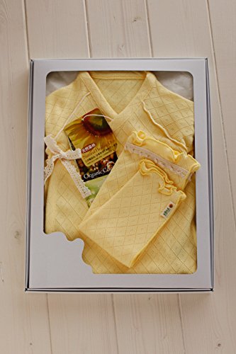 yuga☆【箱入り】「前開きボディ半袖 70cm + レッグウォーマー Mサイズ 2点セット ひまわり染め」 オーガニックコットン100% 天然染め ベビー 服 子ども服 キッズ 女の子 男の子 兼用 ボディ カバーオール 半袖 セット品 出産祝い プレゼント 綿100% 無地