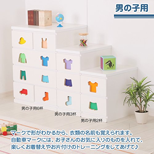 引出しの前板が、お洋服、靴下等のアイコンになっているから、小さなお子様でも、なにがどこにあるかがとってもわかりやすい!