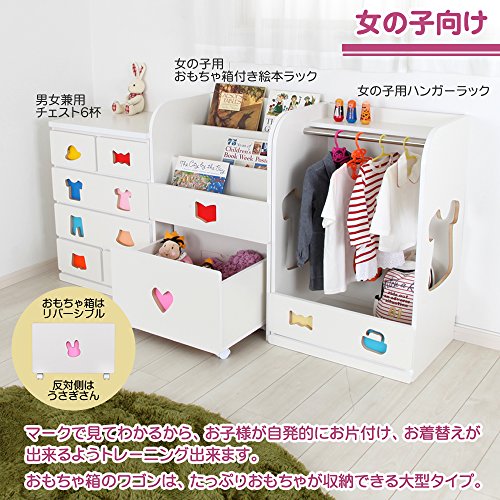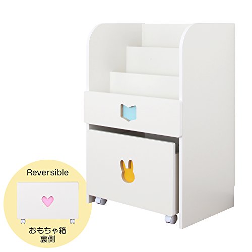 【JAJAN】[国産]お片付けトレーニング家具【トライファ】おもちゃ箱付き絵本ラック 女の子向け(幅59.5cm高さ89.4cm)[知育家具・子ども用][ワゴン付マガジンラック][本棚・えほん入れ][低ホル][完成品]