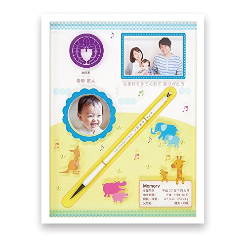 赤ちゃん筆【光文堂】ファミーユ 家紋 ブルー/お仕立券