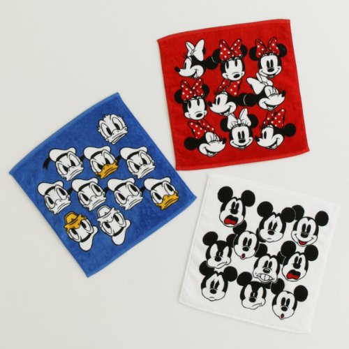 世界中で愛されている愉快なディズニーの仲間たちのシリーズ。メニーフェイスタオルハンカチは、キャラクターのユニークな表情が配置された、昔から愛されている定番のアートです。ホワイトにはミッキー、レッドにはミニー、ブルーにはドナルドが描かれています。どこか懐かしさを覚えるアートが、大人の心をくすぐる一枚です。携帯にも便利なミニタオルサイズです。