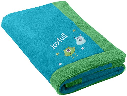 - ビビッドなカラータオルにアップリケ刺繍をした部屋干しタオル