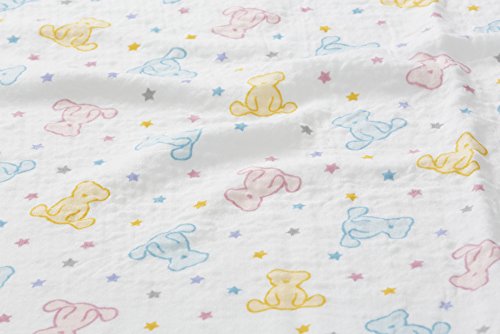 優しいカラーのカラフルなベアと小さな星が一面にデザインされたかわいらしいフリークロスです。おくるみとしてはもちろん、肌かけや日よけカバー、授乳ケープ、おむつ替えシートなど、マルチにお使いいただけます。
