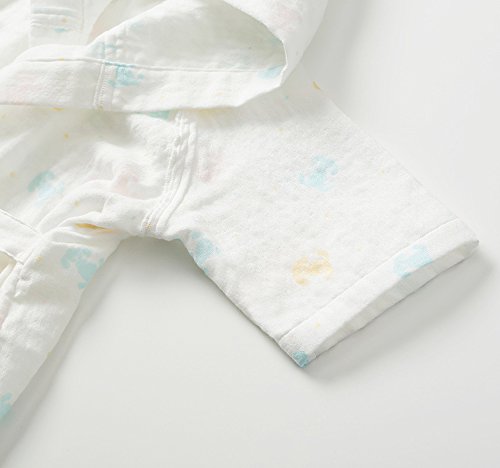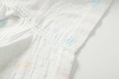 フード部分で髪が拭ける便利なアイテムです。紐つけ位置にもこだわり、背中がごろつきません。また、縫い目を外側にして縫製しているので赤ちゃんの肌に触らず、袖口はお世話する手が入りやすいよう、広めにしてあります。新生児時期にはオクルミとして、丈が長めなので、2才(身長90cm)ぐらいまでご使用いただくことも可能です。