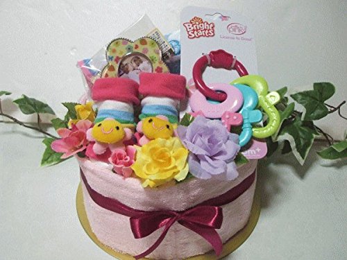 おむつケーキ*女の子出産祝いベビー「お花」ダイパーケーキ*パンパース・ベビーギフト
