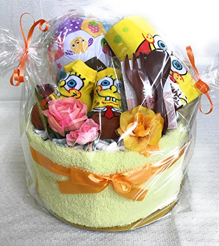 出産祝い おむつケーキ 男の子 女の子「スポンジボブ」ボリューム満点贈り物